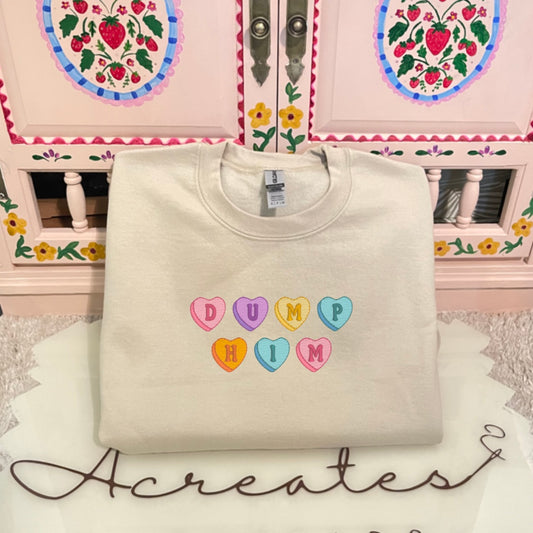 Dump Him Candy Hearts Embroidered Crewneck